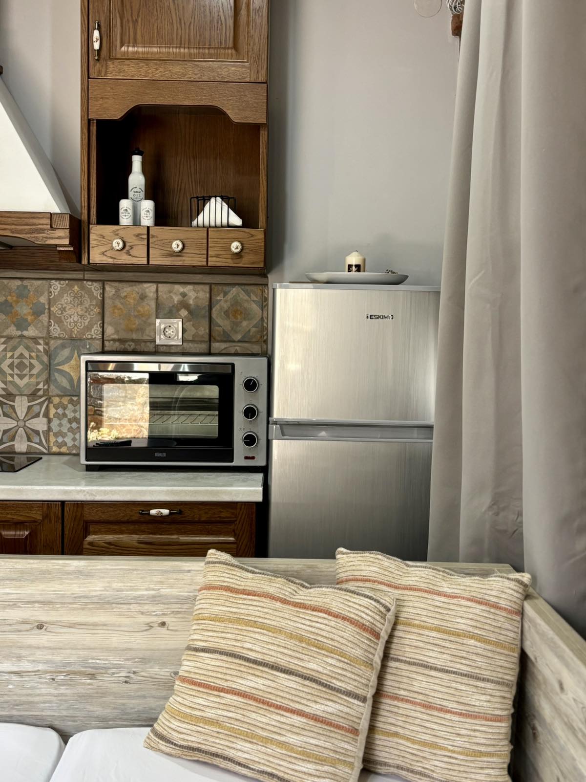 The studio-apartment has all modern comforts with air conditioning, TV and free Wi-fi. An equipped kitchen with stoves and a refrigerator is also provided. Boho Kaldera’s balcony is available to guests with outdoor furniture.